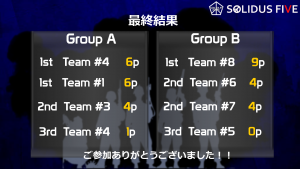 技術検証を目的とした5v5大会。詳細結果はリンク先記事を参照。
