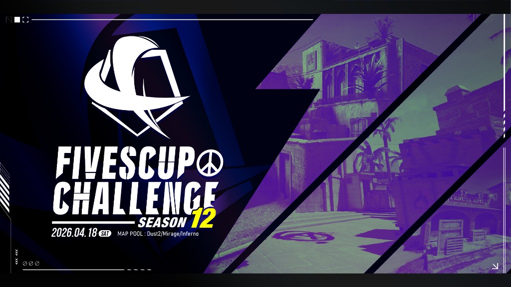 FIVESCUP は S5 Works が運営・主催する Counter-Strike 2(CS2) シリーズのオンライン大会です。コミュニティを重視した大会を目指しています。